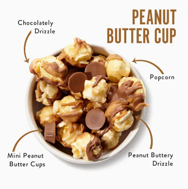 Peanut Butter Cup - Peanut butter and chocolate is an obvious heartbreaker, but we amped up that delight with swirls of peanut buttery and milk chocolatey drizzle. And peanuts. And caramel popcorn.