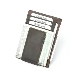 Genuine Leather Wallet with Magnet Clip Dark Brown