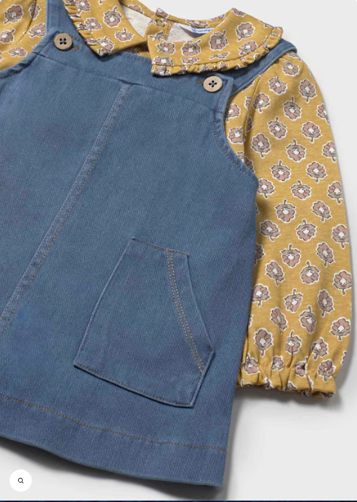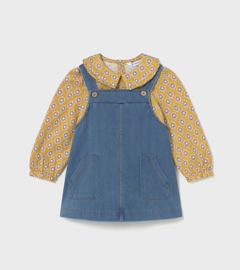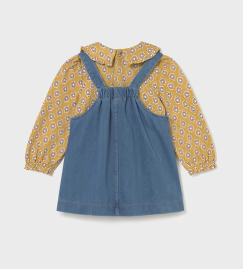 Printed Peter Pan Collar Shirt with Denim Overall Dress