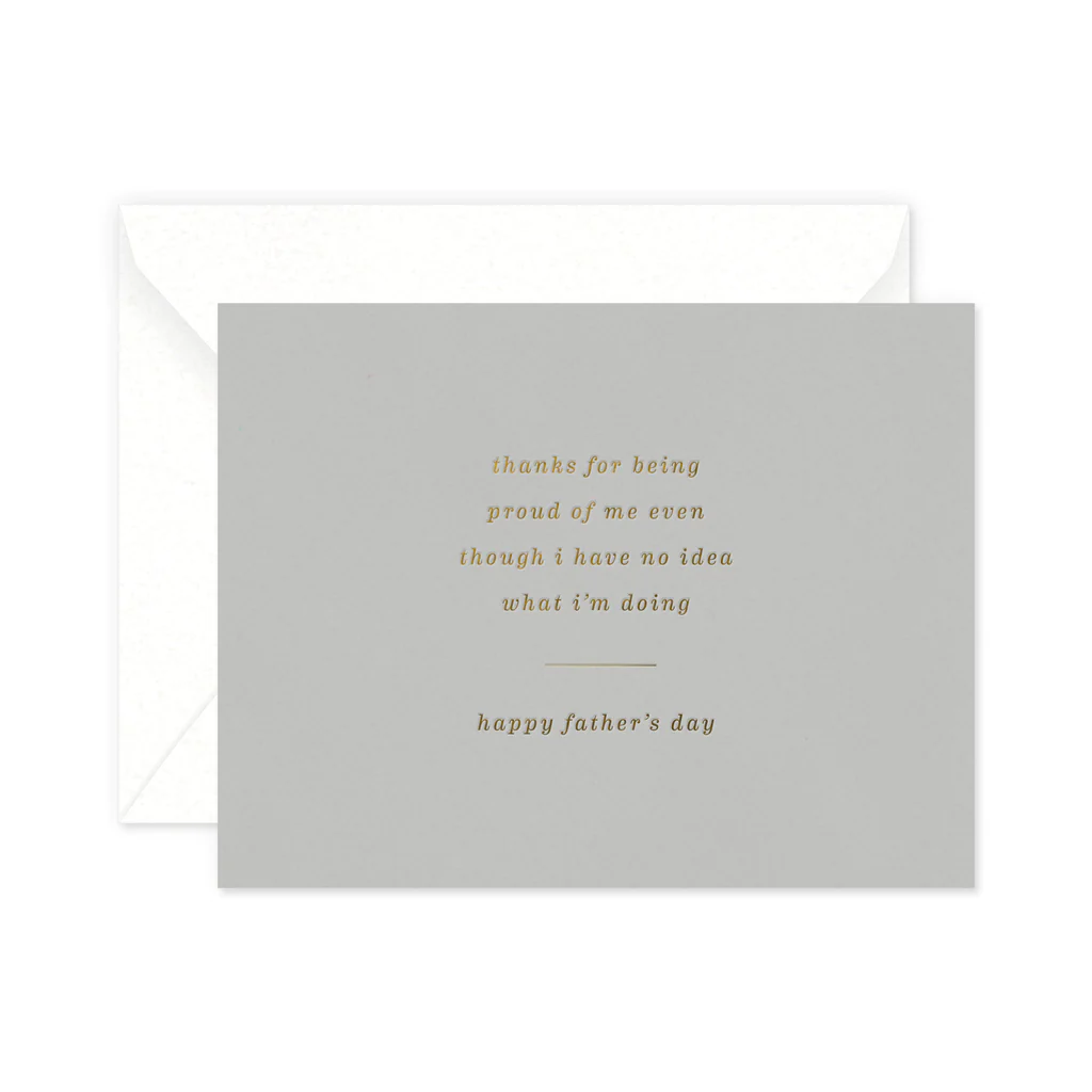Smitten on Paper's Proud Dad card is printed with letterpress foil foil stamping on luxe heavyweight textured grey cardstock. Perfect for Father's Day!