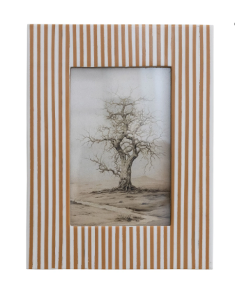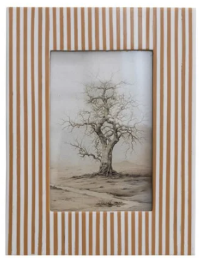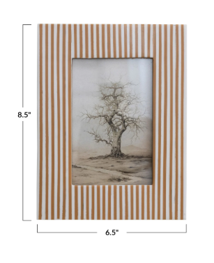 6-1/2"L x 8-1/2"H MDF & Resin Striped Photo Frame, White & Caramel Color (Holds 4" x 6" Photo)