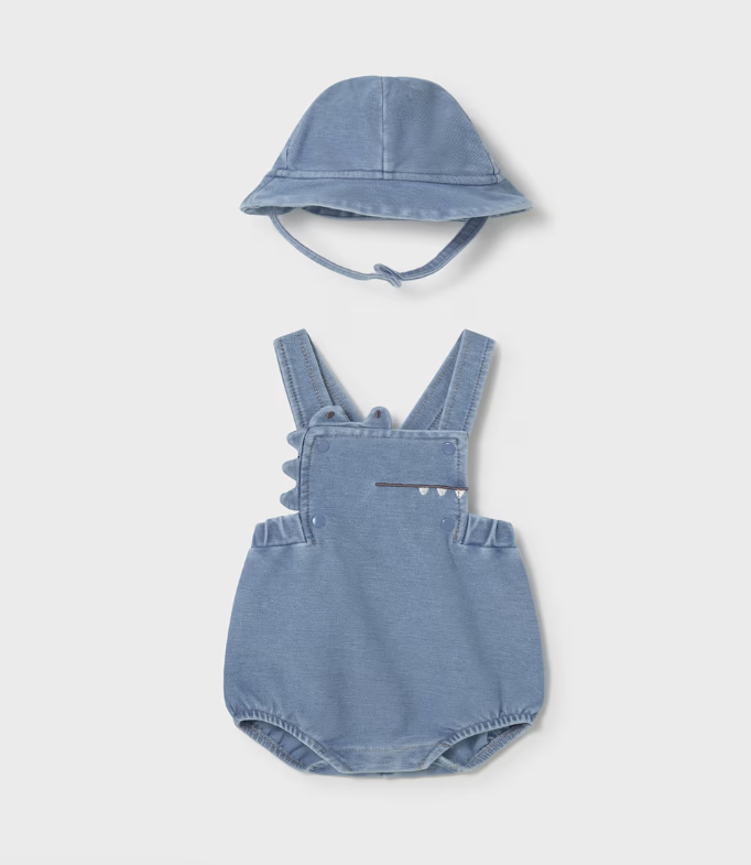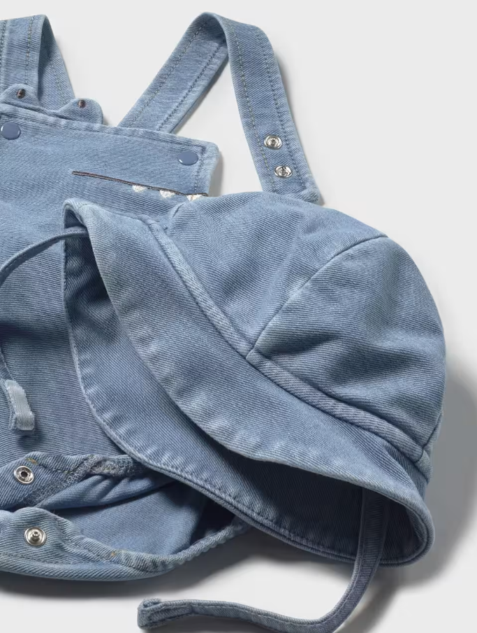 Short Overall with Hat Set - Light Denim