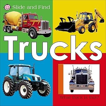 Introducing different concepts from colors to occupations, Slide and Find -- Trucks is full of hidden surprises and questions to encourage learning for young minds. For ages 2 and up!