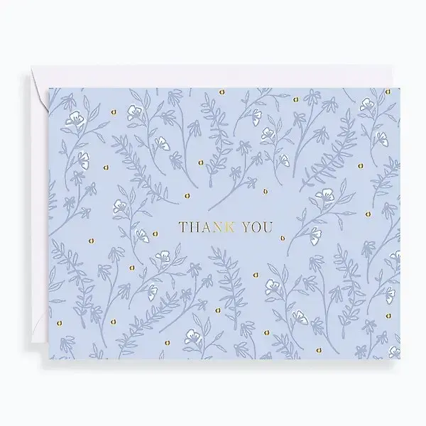 Soft Blue Foliage Thank You Card Set - Set of 10