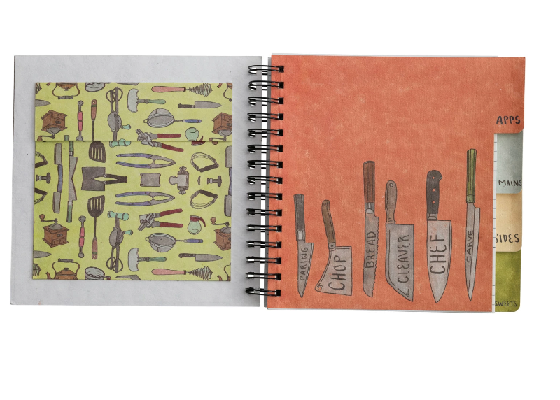 Spiral Bound Paper Recipes Journal w/ Kitchen Utensils/Tools Pattern