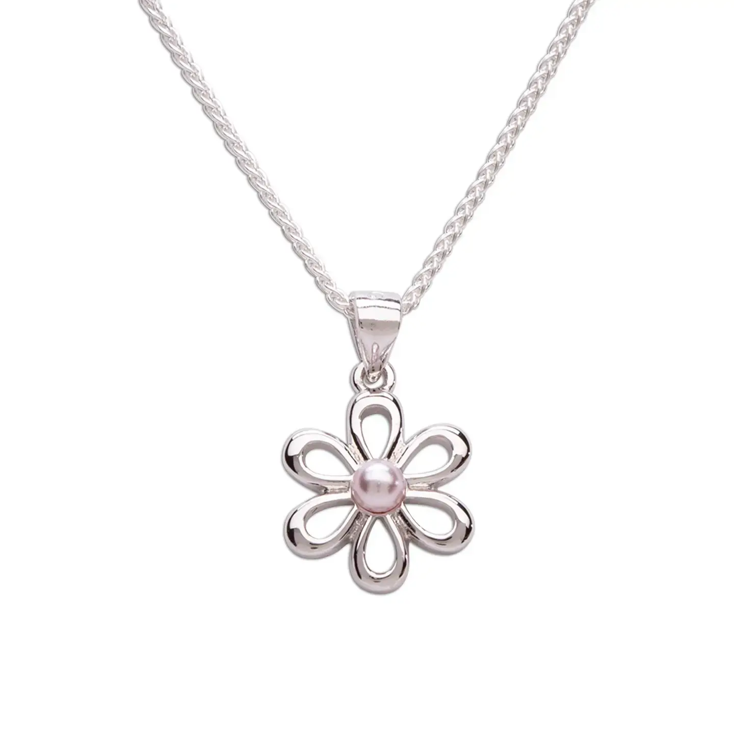 Sterling Silver Screw-Back Outline Daisy Necklace for Kids