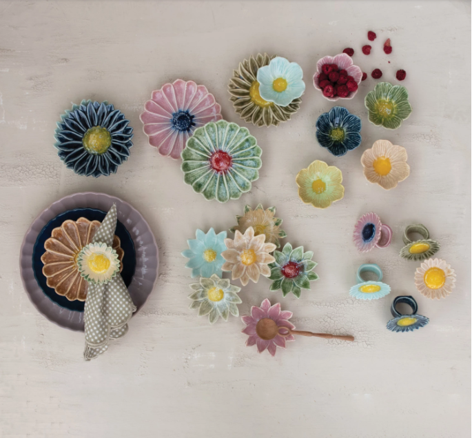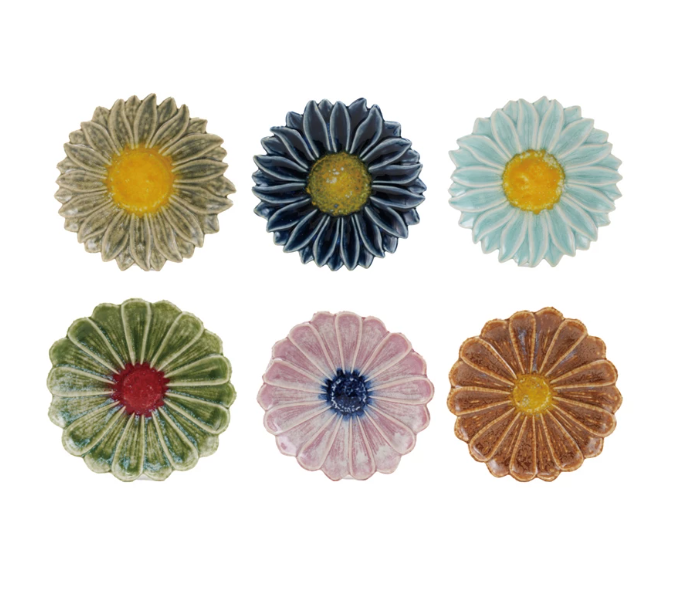 Stoneware Flower Shaped Plate, Reactive Glaze, 6 Assorted Colors