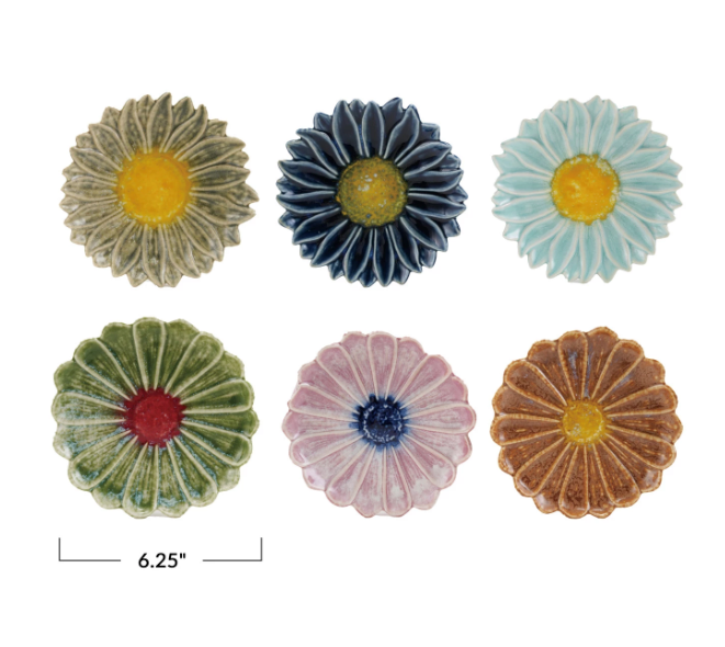 6-1/4" Round Stoneware Flower Shaped Plate, Reactive Glaze, 6 Colors (Each One Will Vary)