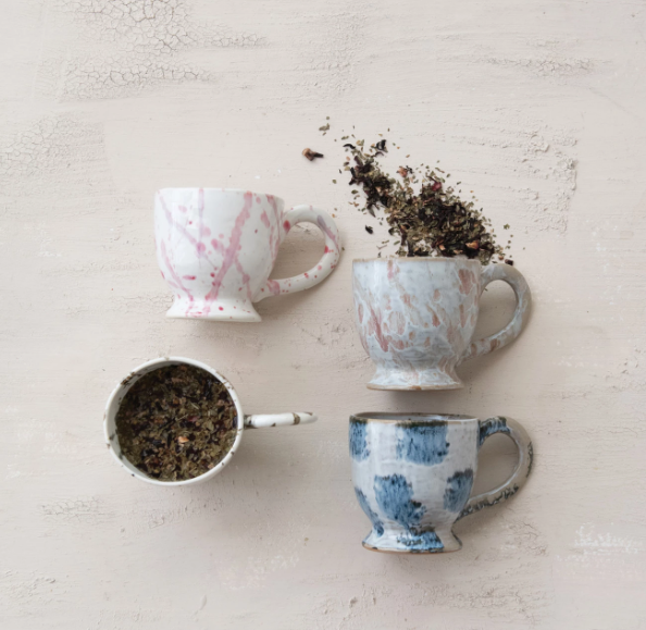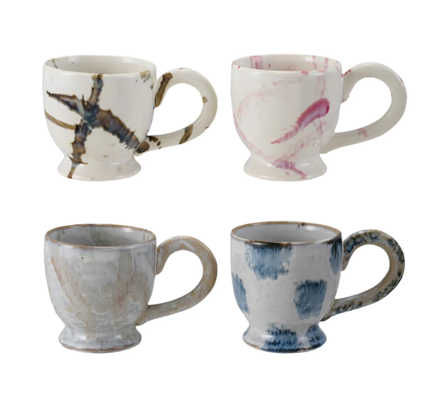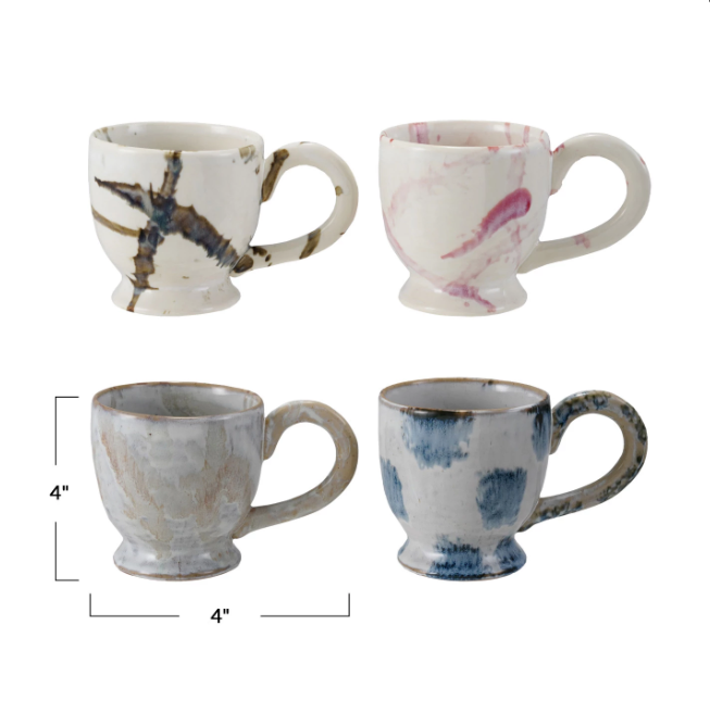 Stoneware Footed Mug w/ Splatter, Reactive Glaze, 4 Assorted Styles, 14 oz.