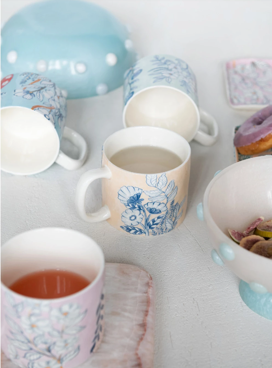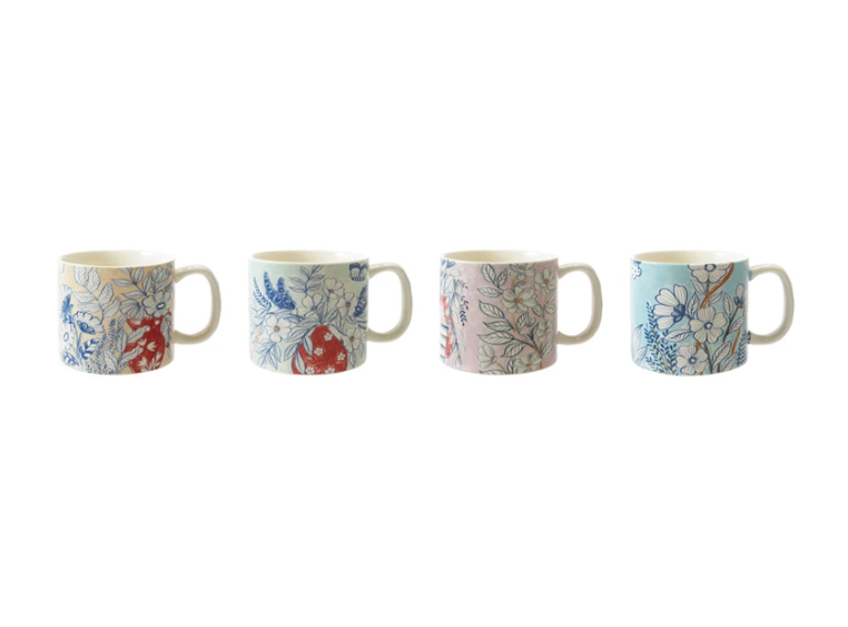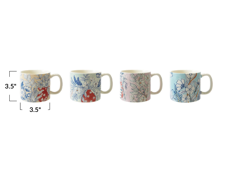 Stoneware Mug w/ Flowers, 4 Assorted Styles, 14 oz.