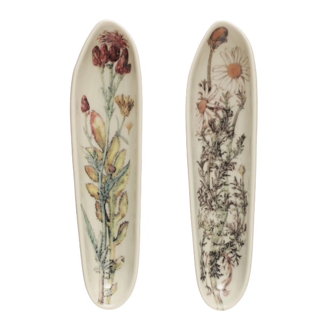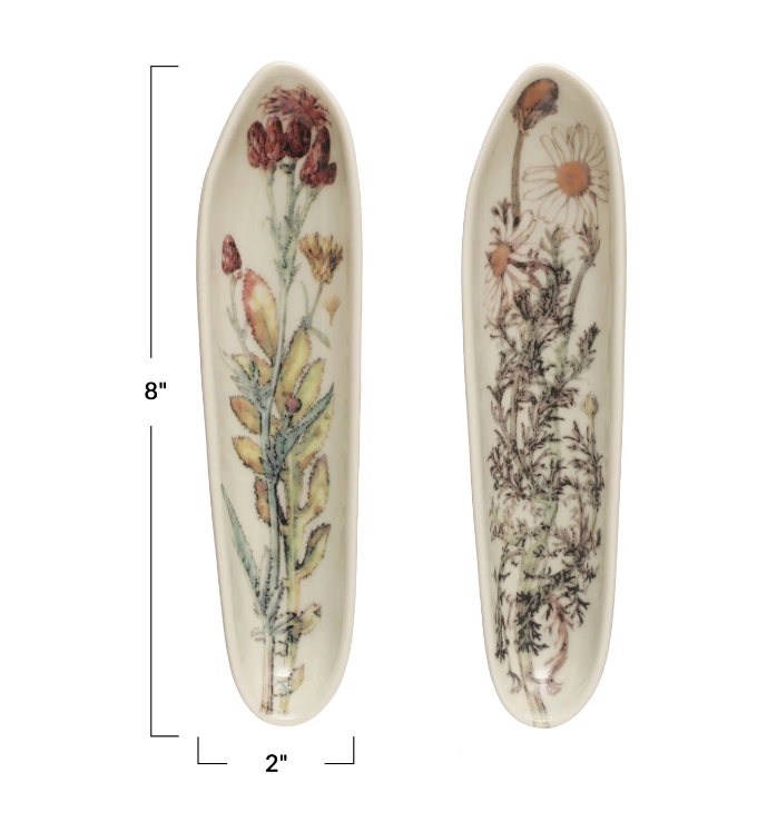 Stoneware Platter w/ Florals, 2 Assorted Patterns