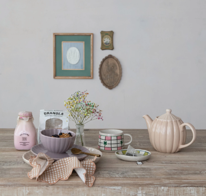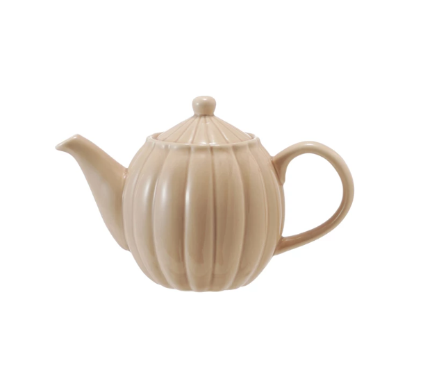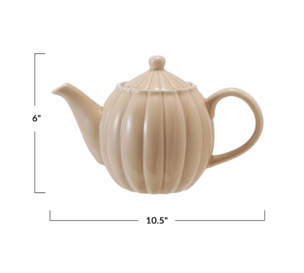 Stoneware Ribbed Teapot, Reactive Glaze, Cream Color 34 ozl
