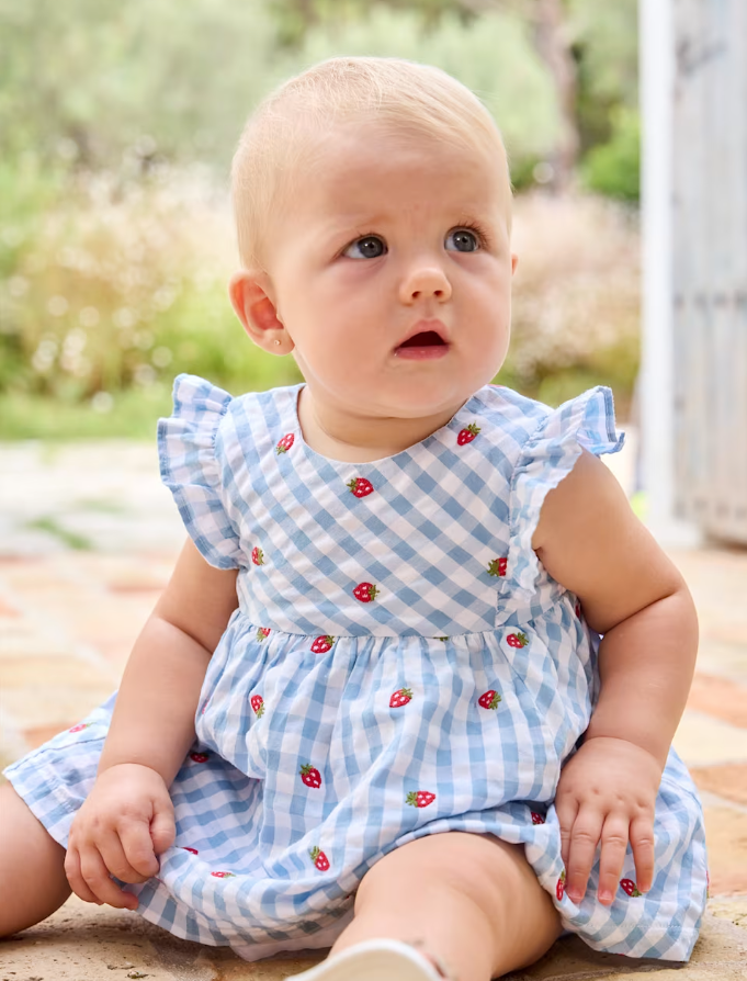 Strawberry Gingham Dress with Bloomers - Lagoon