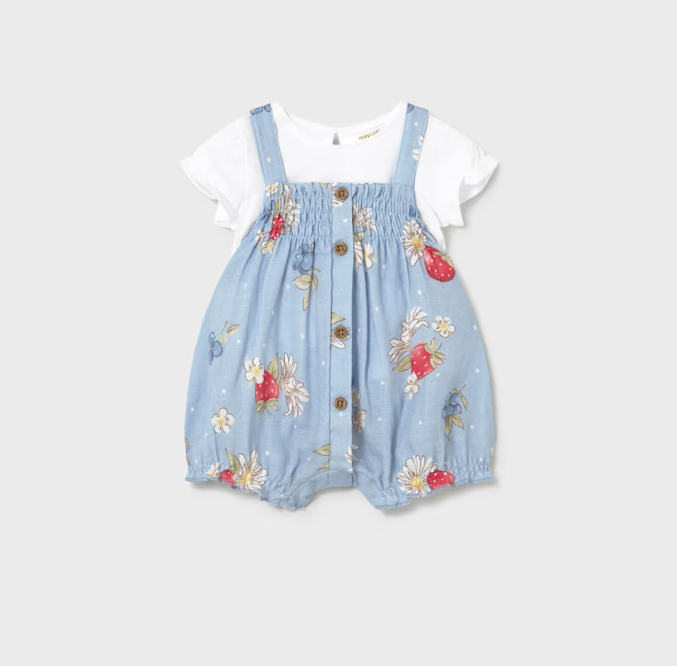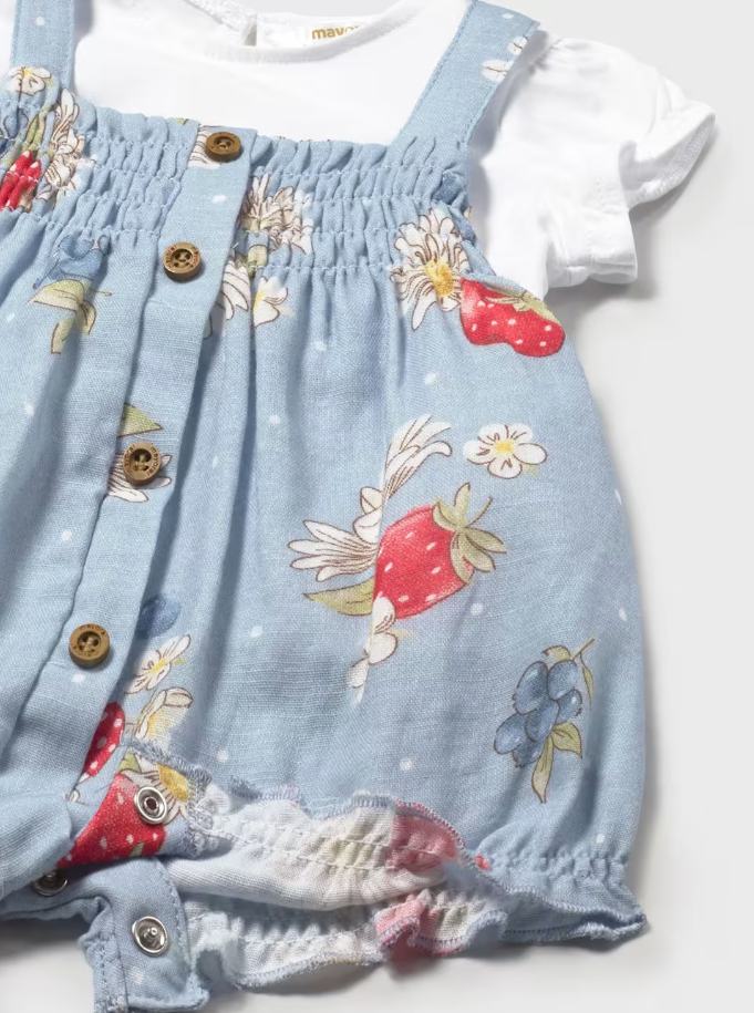 Strawberry Overall and T-shirt Set - Lagoon