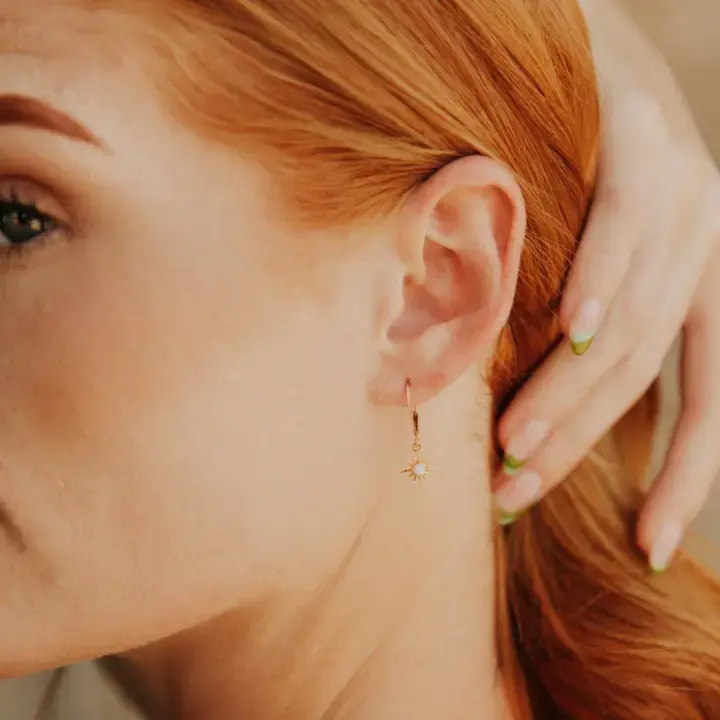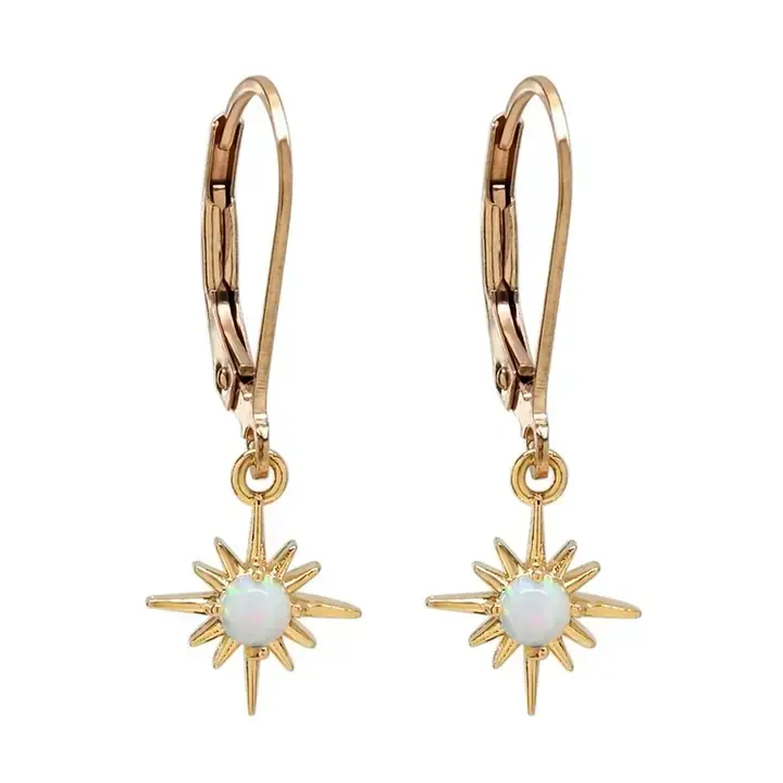 Sun Ray GF Leverback Earrings, Opal