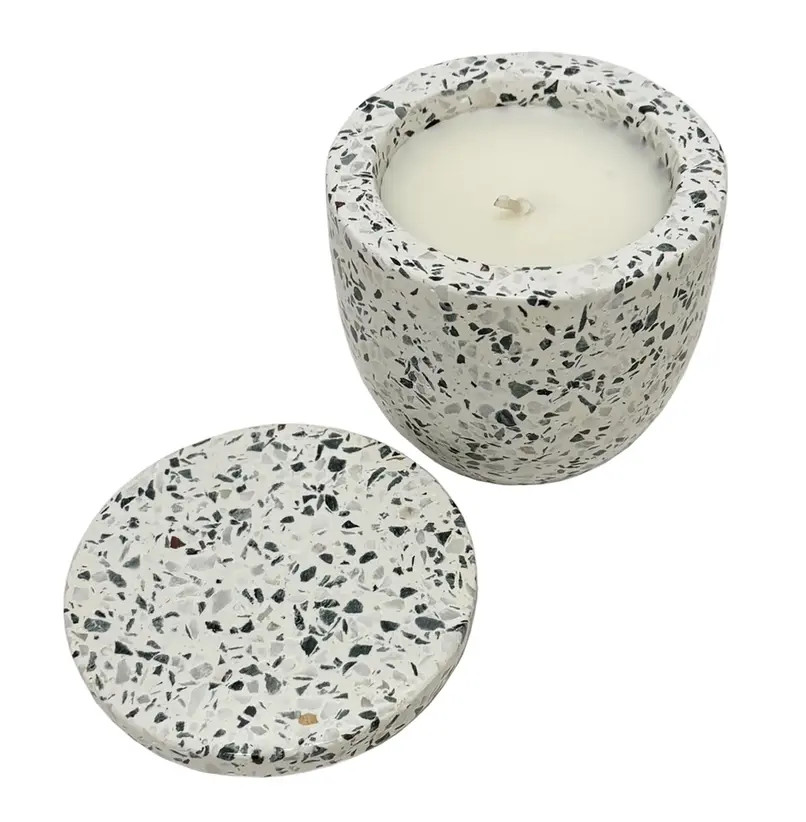 With a fresh and clean scent, our Vanilla Orchid & Tonka Candle is a beautiful addition to any space. Each candle is poured into a terrazzo container with lid. The decorative label is removable, so there will not be any sticky residue to deal with. Each terrazzo container is a shop-stopper and can be used for a variety of functions once the candle is finished.