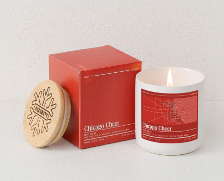 The Walnut Room at Marshall Fields. “Captain Santa” and his Christmas tree ship on Lake Michigan. Mulled wine at Christkindlmarket. Suzy Snowflake on “Ray Rayner and His Friends.” The Christmas Tree Lightings at Grant Park, Daley Plaza, and Millennium Park. The Giant Menorah Lighting at Daley Plaza. Donny Hathaway's "This Christmas." Robert L. May's Rudolph the Red-Nosed Reindeer. Chicago is steeped in holiday tradition. We hope this candle helps you and your family celebrate yours. Happy holidays!