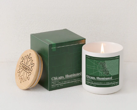 The Walnut Room at Marshall Fields. “Captain Santa” and his Christmas tree ship on Lake Michigan. Mulled wine at Christkindlmarket. Suzy Snowflake on “Ray Rayner and His Friends.” The Christmas Tree Lightings at Grant Park, Daley Plaza, and Millennium Park. The Giant Menorah Lighting at Daley Plaza. Donny Hathaway's "This Christmas." Robert L. May's Rudolph the Red-Nosed Reindeer. Chicago is steeped in holiday tradition. We hope this candle helps you and your family celebrate yours. Happy holidays!