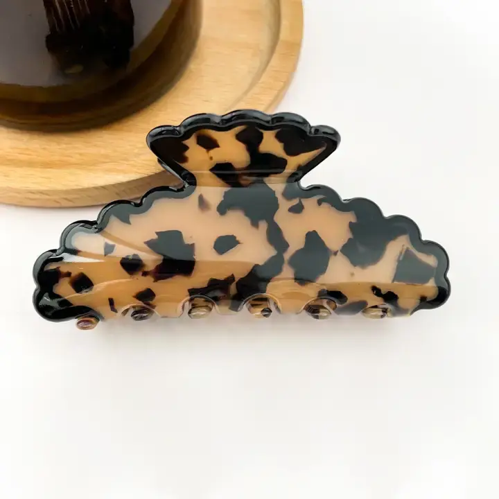Wavy Edge Acetate Hair Claw Clip, Stylish Marble Design | Brown