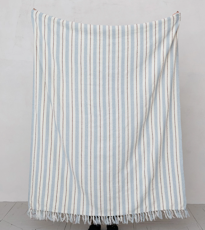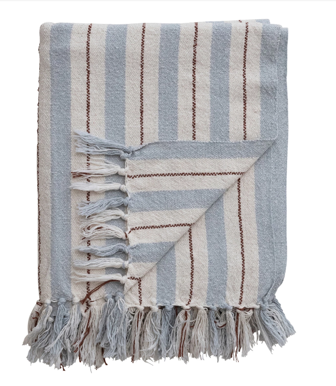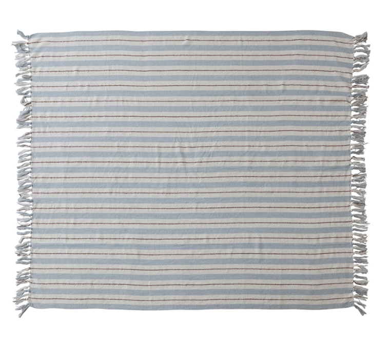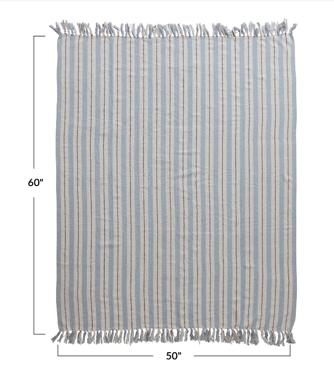 Woven Recycled Cotton Blend Striped Throw w/ Fringe, 60"x50"